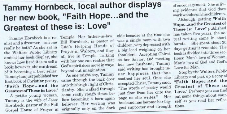 Hornbeck, Tammy Varner - Faith, Hope...and the Greatest of these is: LOVE!